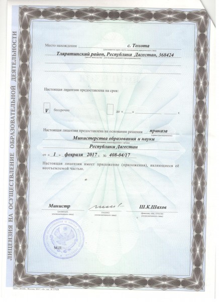| Адрес местонахождения образовательной организации* | 368424,Республика Дагестан,Тляратинский район,с.Тохота, |